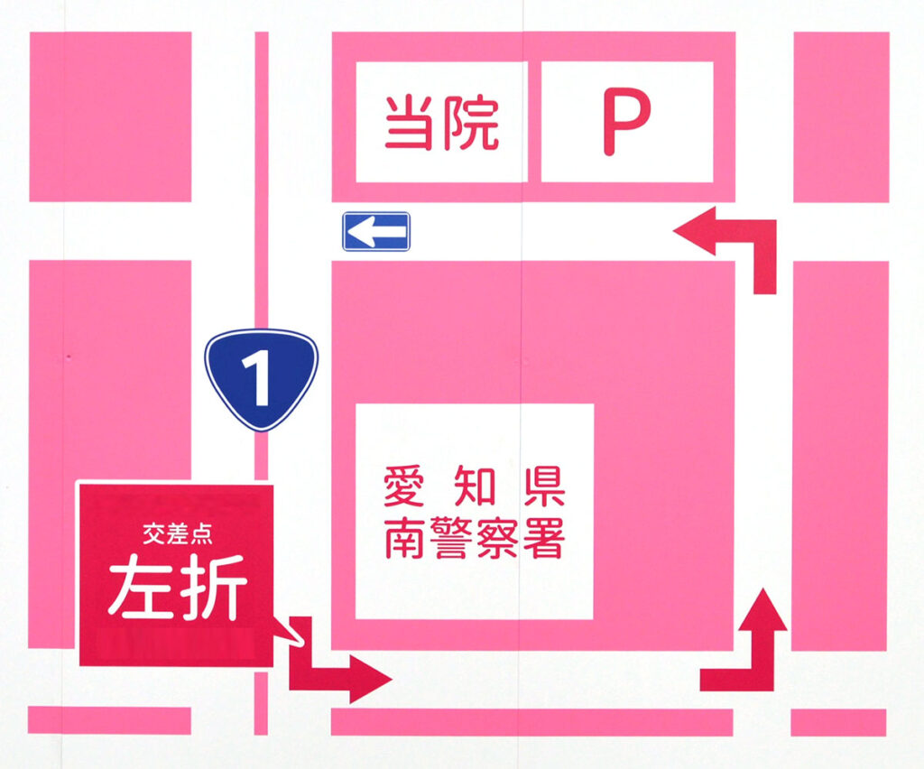 また、クリニック前の道路は一方通行になっています。